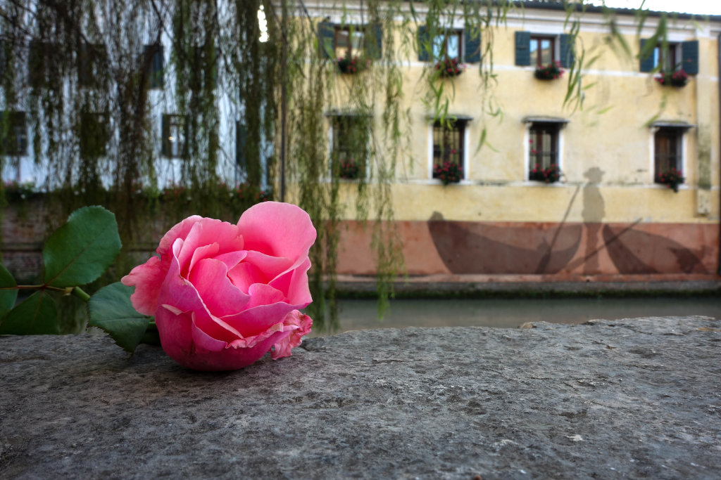 Treviso is van oudsher een stad van water. Hier waaiert de Botteniga uit in verschillende takken die de stad koelen, voeden en verbinden. Al in de 16e eeuw was dit stukje rivierfront economisch belangrijk: de Buranelli brachten waar en vis vanuit de lagune, sloegen op in het magazijnhuis aan de brug en trokken verder de stad in. Later werd de buurt vooral woonachtig en rustig, maar de waterlogica bleef: bruggetjes, portici en een kanaal dat af en toe onder gebouwen door loopt om ruimte te geven aan straten en pleinen.